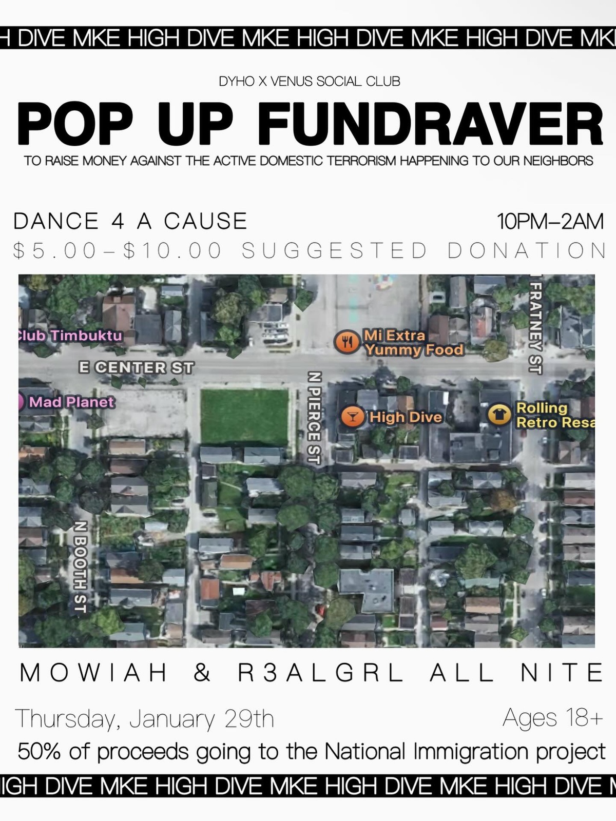 Dyho and Venus Social Club will be joining forces once again to raise money for a cause we feel very strongly for. ICE is a domestic terrorist group and needs to be eradicated immediately.