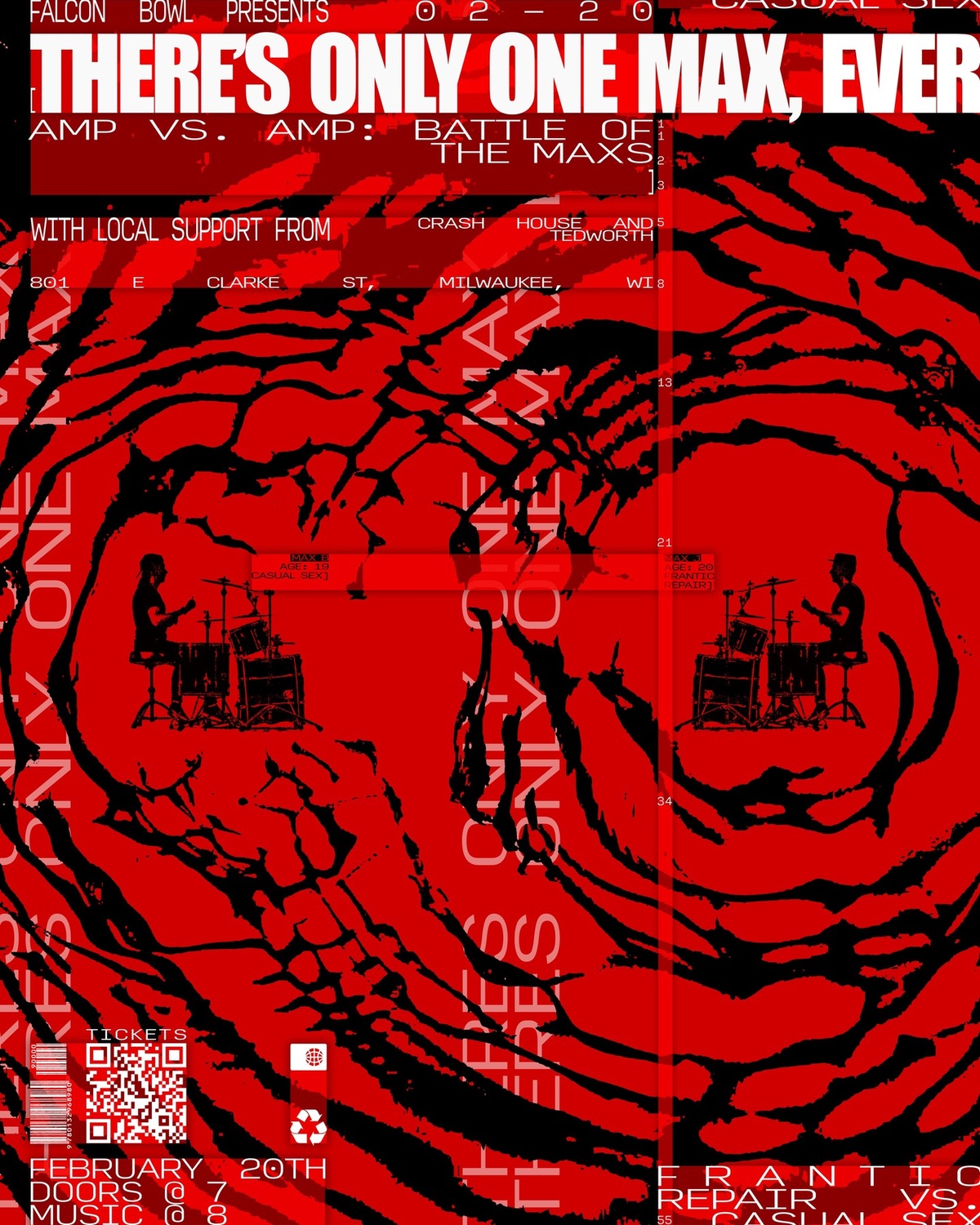 Local emo legends “Frantic Repair” and Sheboygan punks “Casual Sex” with have both their drummers, conveniently named Max, battle for who the best Max is.