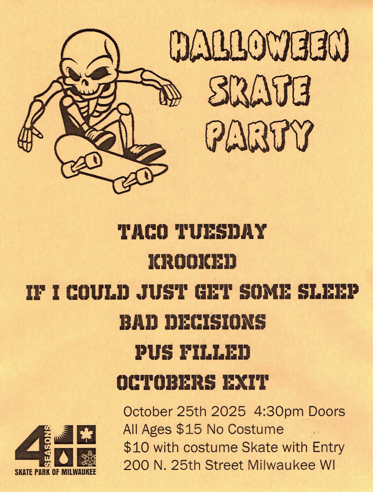 October's Exit, Pus Filled, Bad Decisions, If I Could Just Get Some Sleep, Krooked, Taco Tuesday