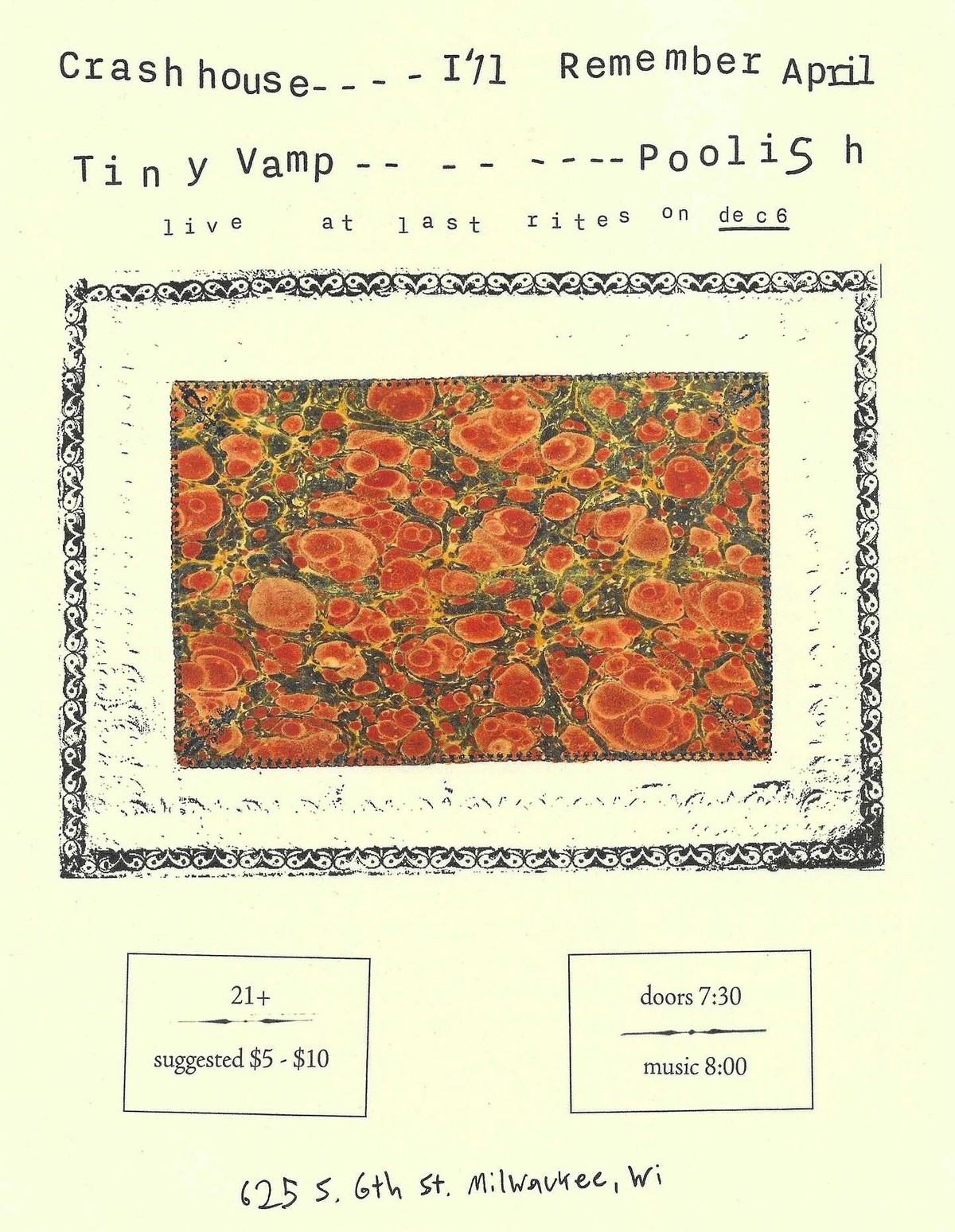 Poolish, Tiny Vamp, Crash House, I'll Remember April