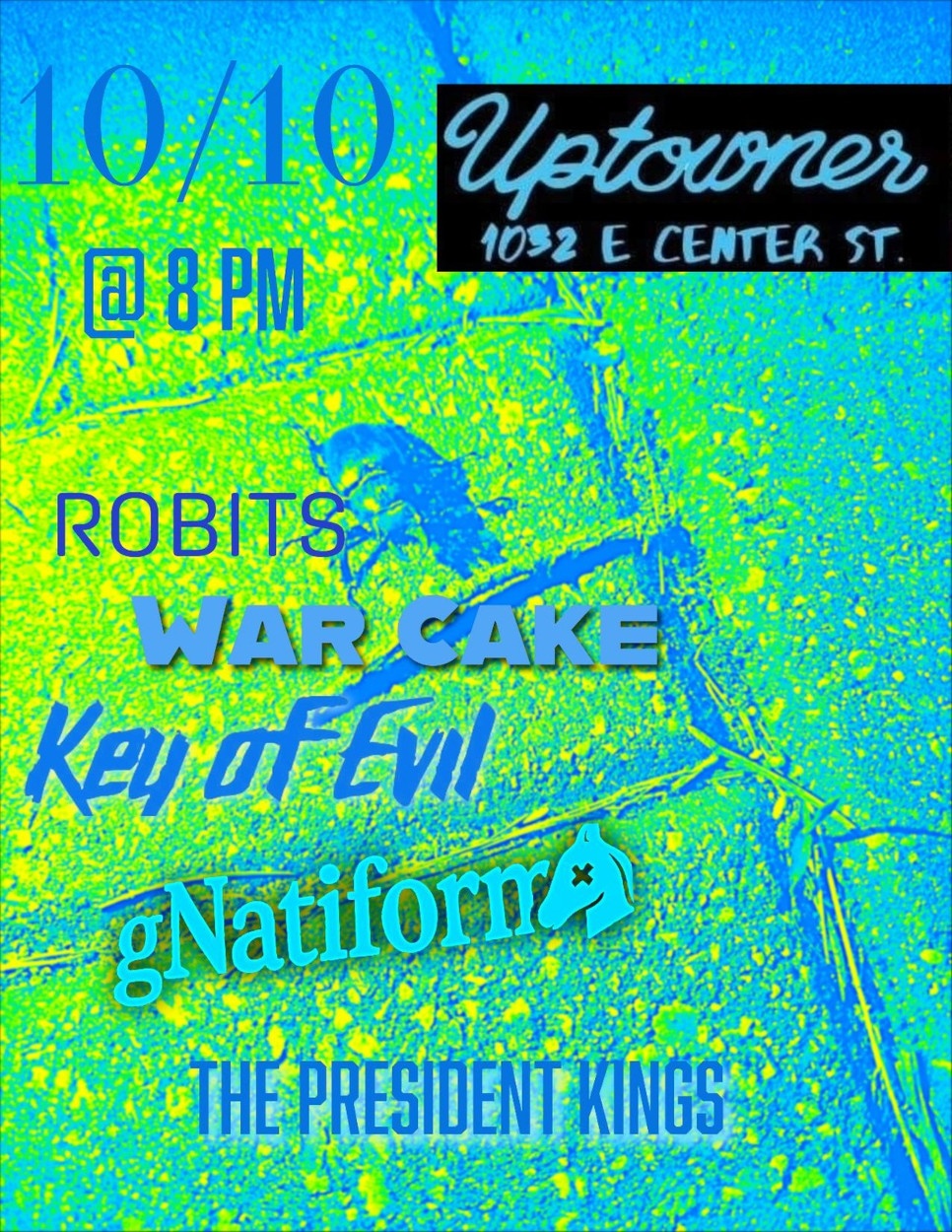 We'll be re-creating the magic from the September Gnaitform album release show with alt-rock duo President Kings and mathy/sludgy duo Key of Evil to get weird at Milwaukee's historic Uptowner (21+) and adding two more bands!!! Milwaukee's lovable punks Robits and the sludge-gaze duo from Minneapolis: Warcake - no cover but you can throw money at us (underhand)