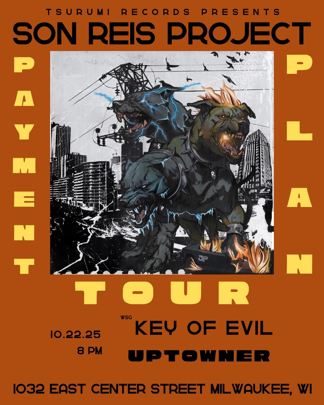 Son Reis Project (jazz/punk/metal trio) venture out of the Fox Valley in support of their new release Payment Plan, joined by special guests Key of Evil (local sludgy/mathy/noisey duo) on 4 of the 6 dates including this Wednesday night
