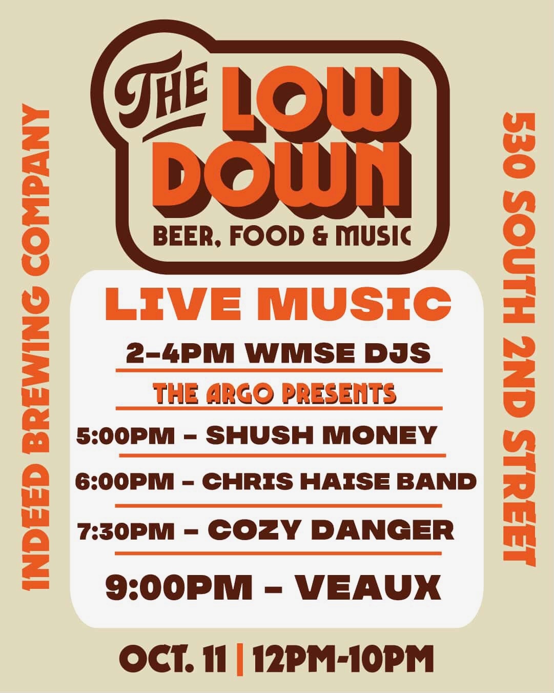THE ARGO, Indeed Brewing and WMSE 91.7 FM are shutting down a stretch of South 2nd Street for a block party to close out Oktoberfest. Come enjoy some great beer, live music, unique vendors, delicious local food offerings, and community as the seasons change.
