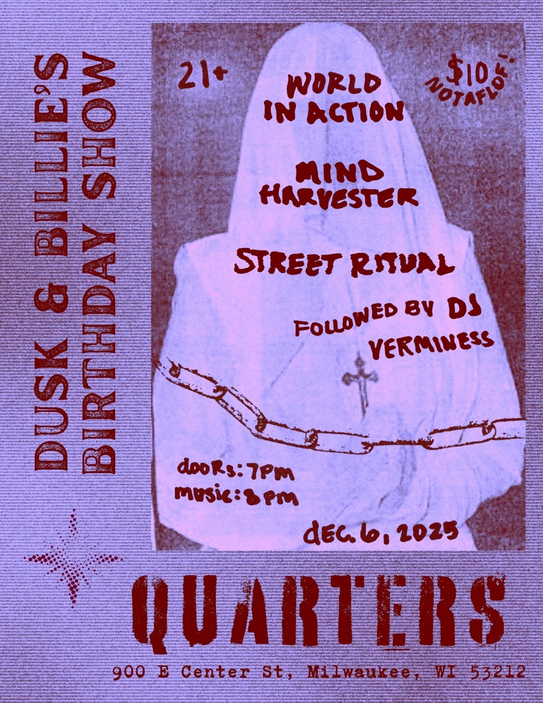 World In Action, Mind Harvester, Street Ritual, DJ Verminess